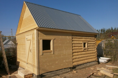 Баня 2х4,5 (рубленая сосна) 2х3 (моечная), 1,5х2 (предбанник) №1